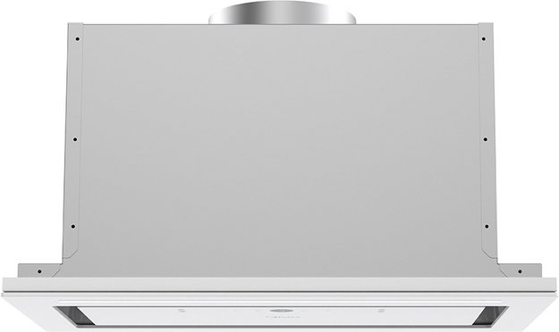 Вытяжка, встраиваемая в потолок, часто устанавливается над кухонным островом в просторной кухне и отличается достаточно высокой мощностью: она может работать как в режиме рециркуляции, так и в режиме отвода, так как воздуховод также скрыт в потолке. Вытяжки могут монтироваться в подвесной потолок либо устанавливаться в специальные многоярусные конструкции из гипсокартона непосредственно во время ремонта кухни. Для управления ими используется пульт ДУ.