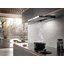 Можно выделить два основных вида вытяжек с выдвижной панелью. В вытяжках, встраиваемых в подвесной шкаф, выдвижная панель необходима, так как размеры таких устройств определяются размерами самого шкафа. В закрытом состоянии глубина вытяжки может быть меньше глубины варочной поверхности. Телескопическая выдвижная панель, которая устанавливается преимущественно в устройствах, работающих в режиме отвода, гарантирует полный захват воздуха, загрязненного каплями жира, частицами сажи, испарениями. Панель можно выдвинуть как нажатием на кнопку, так и потянув за ее переднюю часть. В некоторых моделях при подобном выдвижении одновременно включается подсветка. Когда же панель убрана, вытяжка становится практически незаметной — такой вариант лучше всего подходит для небольшой кухни.