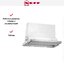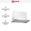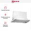Модель шириной 60 см монтируется над варочной поверхностью с 2-4 конфорками. Серебристый корпус имеет выдвижной экран с возможностью установки декоративной планки, который увеличивает площадь всасывания загрязненного воздуха. Вытяжка включится автоматически при выдвижении экрана. Максимальная производительность 740 м3/ч — ее достаточно для эффективного удаления загрязнений в большом помещении. Благодаря бесщеточному BLDC-мотору Efficient Drive устройство работает очень тихо: уровень шума на первой скорости составит всего 43 дБ, а на максимальной — 55 дБ.
