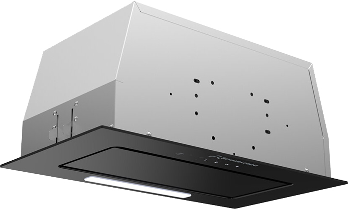 Вытяжка, встраиваемая в потолок, часто устанавливается над кухонным островом в просторной кухне и отличается достаточно высокой мощностью: она может работать как в режиме рециркуляции, так и в режиме отвода, так как воздуховод также скрыт в потолке. Вытяжки могут монтироваться в подвесной потолок либо устанавливаться в специальные многоярусные конструкции из гипсокартона непосредственно во время ремонта кухни. Для управления ими используется пульт ДУ.
