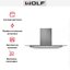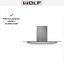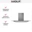 Данная модель Wolf крепится к стене — широкое основание из нержавеющей стали и декоративная стеклянная панель покрывают пространство над варочной панелью, даже если ее размеры выходят за рамки стандартных. Лаконичный дизайн в металлических оттенках подойдет практически любой кухне — особенно хорошо будет смотреться в интерьере с уклоном в «индустриальный».