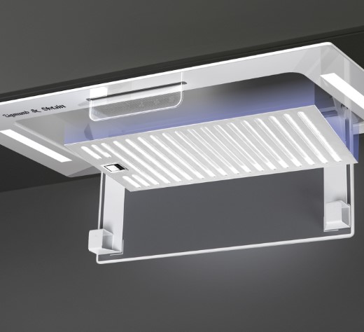 Вытяжки, встраиваемые в столешницу — эффективная инновация, которая подойдет для установки в кухне любой площади. Такие вытяжки размещаются за варочной поверхностью или рядом с ней. В отключенном состоянии всасывающая панель находится под столешницей, но после включения одной или нескольких конфорок она автоматически выдвигается при помощи специального лифтового механизма. Загрязненный воздух улавливается, не успевая распространиться по помещению. Когда вытяжка убрана, на виду остается только сенсорная панель управления. Недостатком подобных моделей является только сравнительно высокая цена.