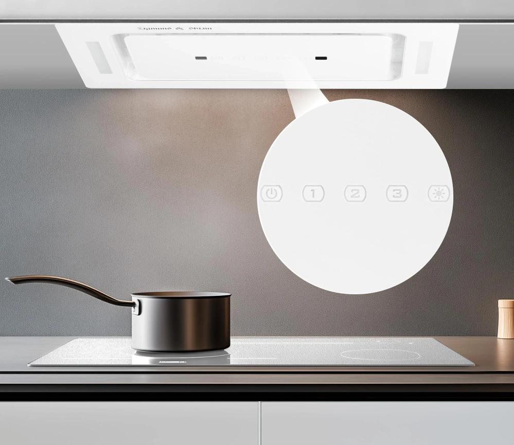 Вытяжки, встраиваемые в столешницу — эффективная инновация, которая подойдет для установки в кухне любой площади. Такие вытяжки размещаются за варочной поверхностью или рядом с ней. В отключенном состоянии всасывающая панель находится под столешницей, но после включения одной или нескольких конфорок она автоматически выдвигается при помощи специального лифтового механизма. Загрязненный воздух улавливается, не успевая распространиться по помещению. Когда вытяжка убрана, на виду остается только сенсорная панель управления. Недостатком подобных моделей является только сравнительно высокая цена.