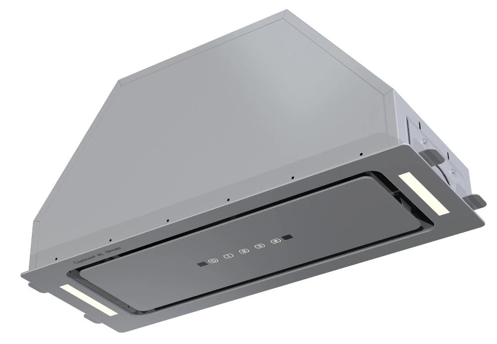 Вытяжка, встраиваемая в потолок, часто устанавливается над кухонным островом в просторной кухне и отличается достаточно высокой мощностью: она может работать как в режиме рециркуляции, так и в режиме отвода, так как воздуховод также скрыт в потолке. Вытяжки могут монтироваться в подвесной потолок либо устанавливаться в специальные многоярусные конструкции из гипсокартона непосредственно во время ремонта кухни. Для управления ими используется пульт ДУ.