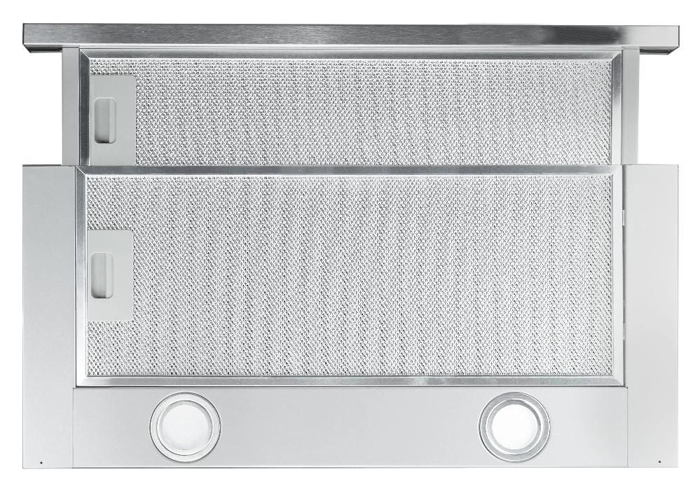 В вытяжках, интегрированных в варочную поверхность и работающих в режиме рециркуляции, панель выдвигается при включении зоны нагрева автоматически. В закрытом же состоянии видны только сенсорные управляющие элементы, которые находятся вровень с варочной поверхностью.