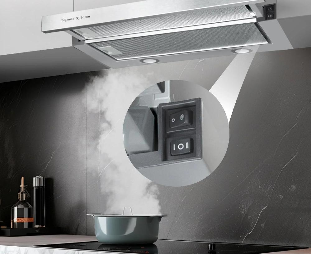 Встраиваемая вытяжка — выбор тех, кто хочет максимально задекорировать технику, или владельцев маленькой кухни. Тип встраивания: в шкаф. Обратите внимание на цветовые сочетания модели Zigmund Shtain K 017.6 S, чтобы органично вписать ее в свою квартиру. Оттенок корпуса: нержавеющая сталь. Благодаря лампочкам, которые расположены на нем, можно освещать плиту и столешницу рядом, чтобы готовить было еще проще и приятнее. Фишка этой техники — выдвижная панель.