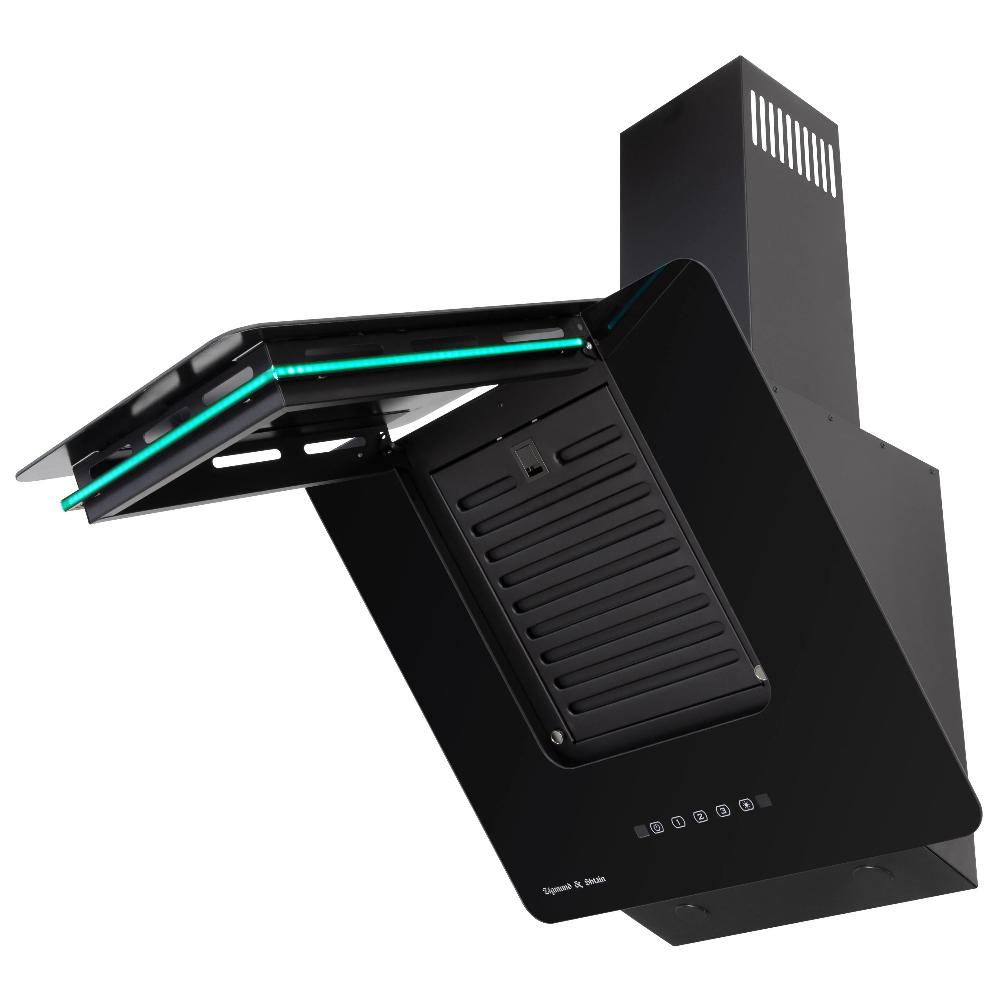 Данная вытяжка крепится на стену и имеет наклонную фронтальную панель, что придает изюминку дизайну и позволяет сохранить свободное рабочее пространство внизу. Обратите внимание на цветовые сочетания модели Zigmund Shtain K 150.6 B, чтобы органично вписать ее в свою квартиру. Оттенок корпуса: черный. Благодаря лампочкам, которые расположены на нем, можно освещать плиту и столешницу рядом, чтобы готовить было еще проще и приятнее.