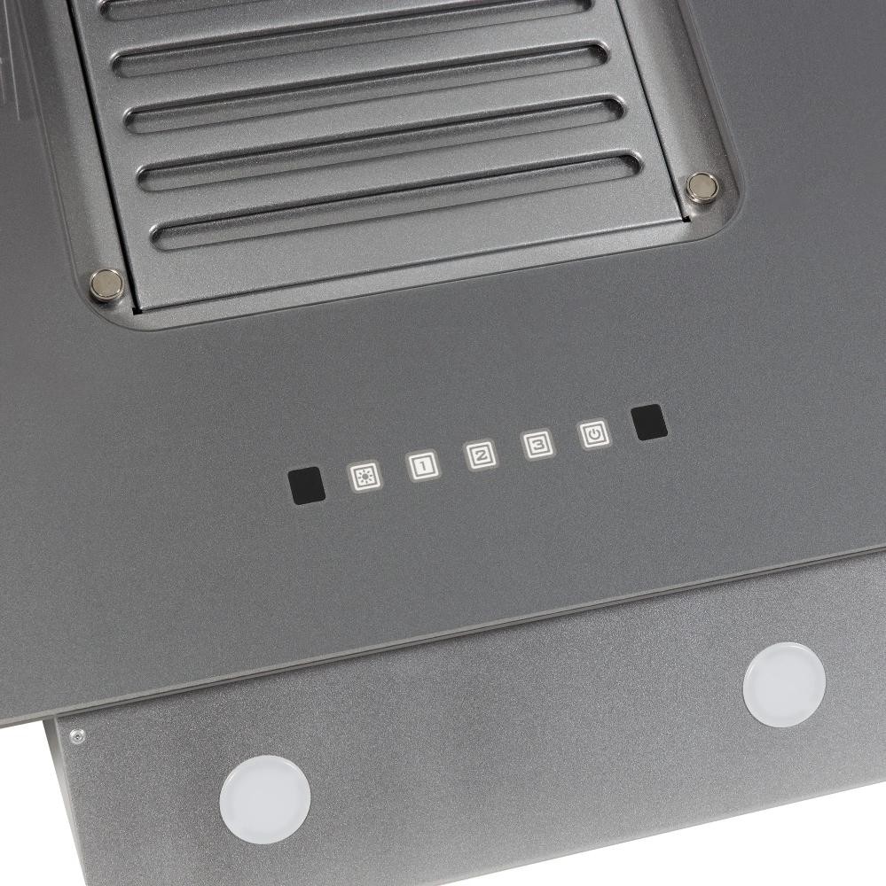 Встраиваемые и простые настенные модели, как правило, оснащаются боковой панелью управления, состоящей из нескольких кнопок. Их количество зависит от числа скоростей, наличия интенсивного режима и встроенного освещения. Боковое расположение панели управления делает вытяжку еще более незаметной.