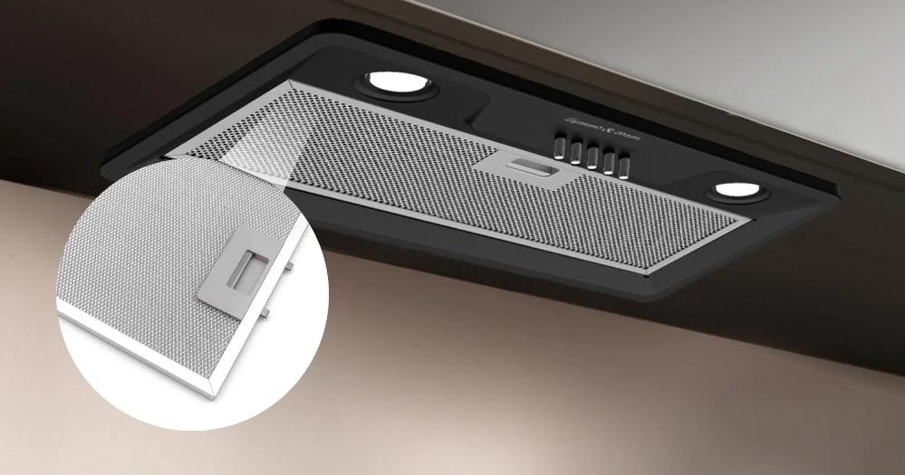 Все современные вытяжки оборудованы системой фильтров, обеспечивающей очистку воздуха и защиту двигателя от капель жира, водяных паров, частиц сажи и других загрязнений. Большинство вытяжек комплектуется сменным жироулавливающим фильтром, который представляет собой конструкцию из рамки со вставленными в нее слоями металлической сетки — как правило, алюминиевой или стальной. Обычно устанавливают 1 или 2 штуки, реже 3 или 4.