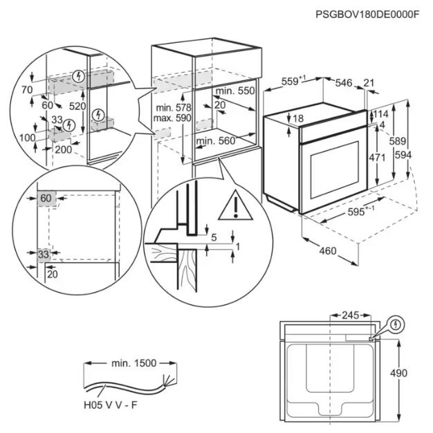 AEG NBT9P83IAT - схема с размерами к духовому шкафу на разных языках на Hausdorf
