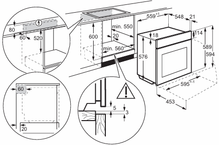 Electrolux EOD6F77WV - схема встраивания к духовому шкафу на разных языках на Hausdorf