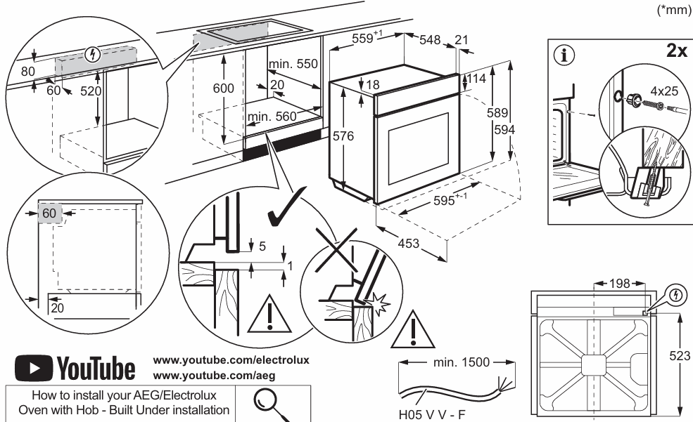 Electrolux EOD6P66WX - схема встраивания к духовому шкафу на разных языках на Hausdorf