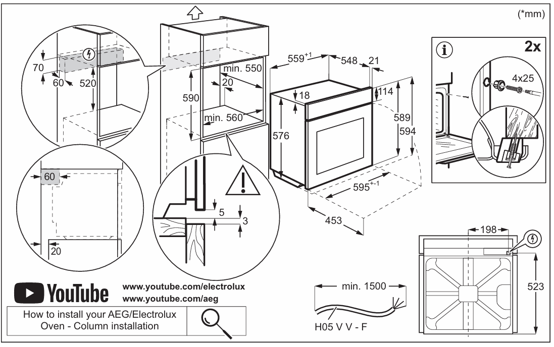 Electrolux LOD6F77WZ - схема встраивания версия 2 к духовому шкафу на разных языках на Hausdorf