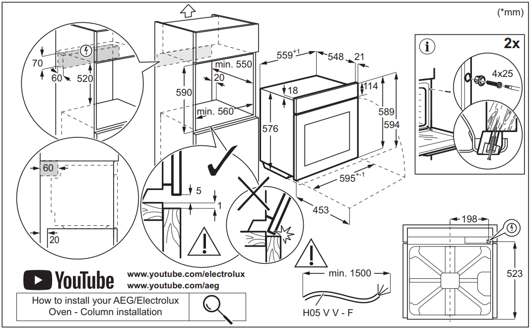 Electrolux LOE8F38X - схема встраивания версия 2 к духовому шкафу на разных языках на Hausdorf
