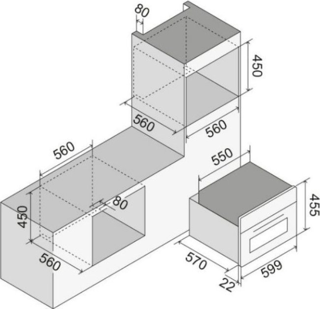 Ilve 645SCHSW/SSC - схема встраивания к духовому шкафу на разных языках на Hausdorf