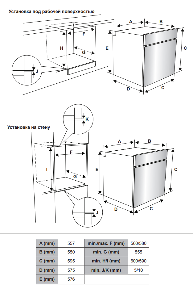 Jacky`s JO EW7535 - схема встраивания к духовому шкафу на разных языках на Hausdorf