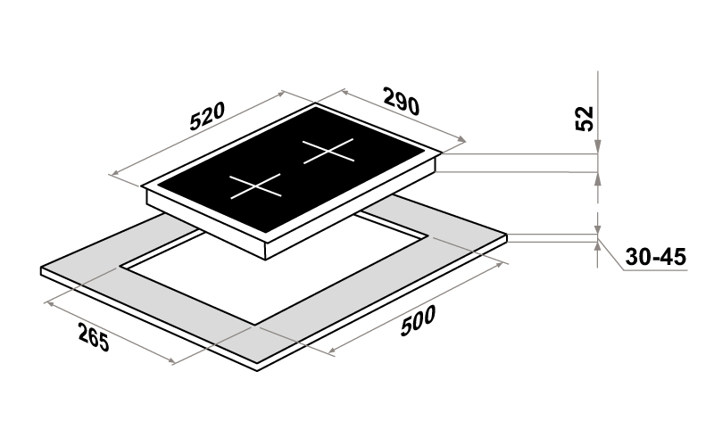 Maunfeld CVCE292BK - схема с размерами версия 2 к варочной панели на разных языках на Hausdorf