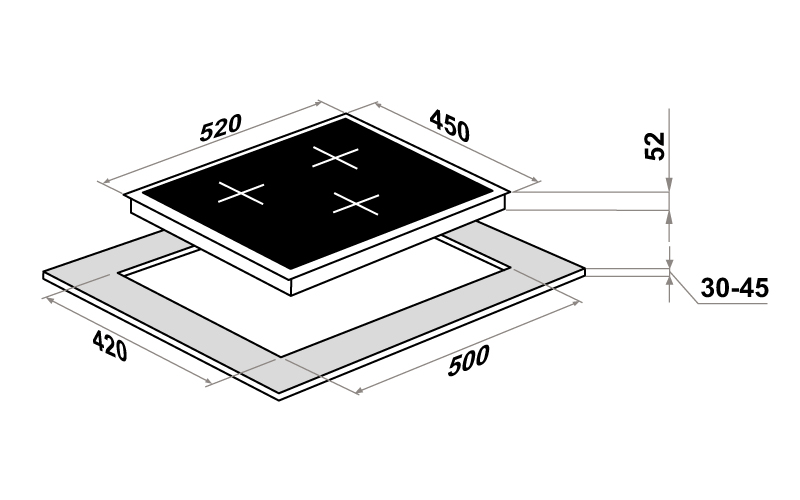 Сохранить файл: Схема с размерами к Maunfeld CVCE453BK.JPG, 67.6 Кб
