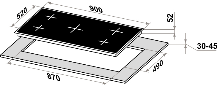Maunfeld CVCE905SMTBK - схема с размерами к варочной панели на разных языках на Hausdorf