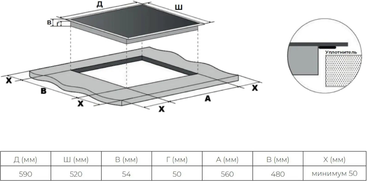 Haier HHK-Y64TCVB - схема встраивания к варочной панели на разных языках на Hausdorf