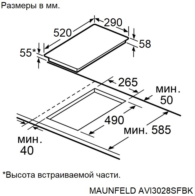 Maunfeld AVI3028SFBK - схема с размерами к варочной панели на разных языках на Hausdorf