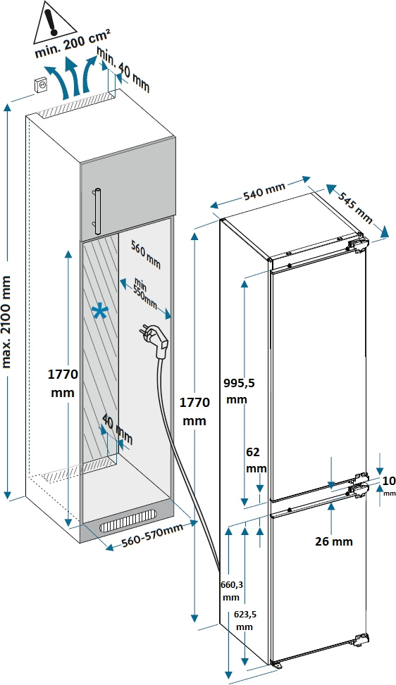 Hyundai HBR 1785 - схема встраивания к холодильнику на разных языках на Hausdorf