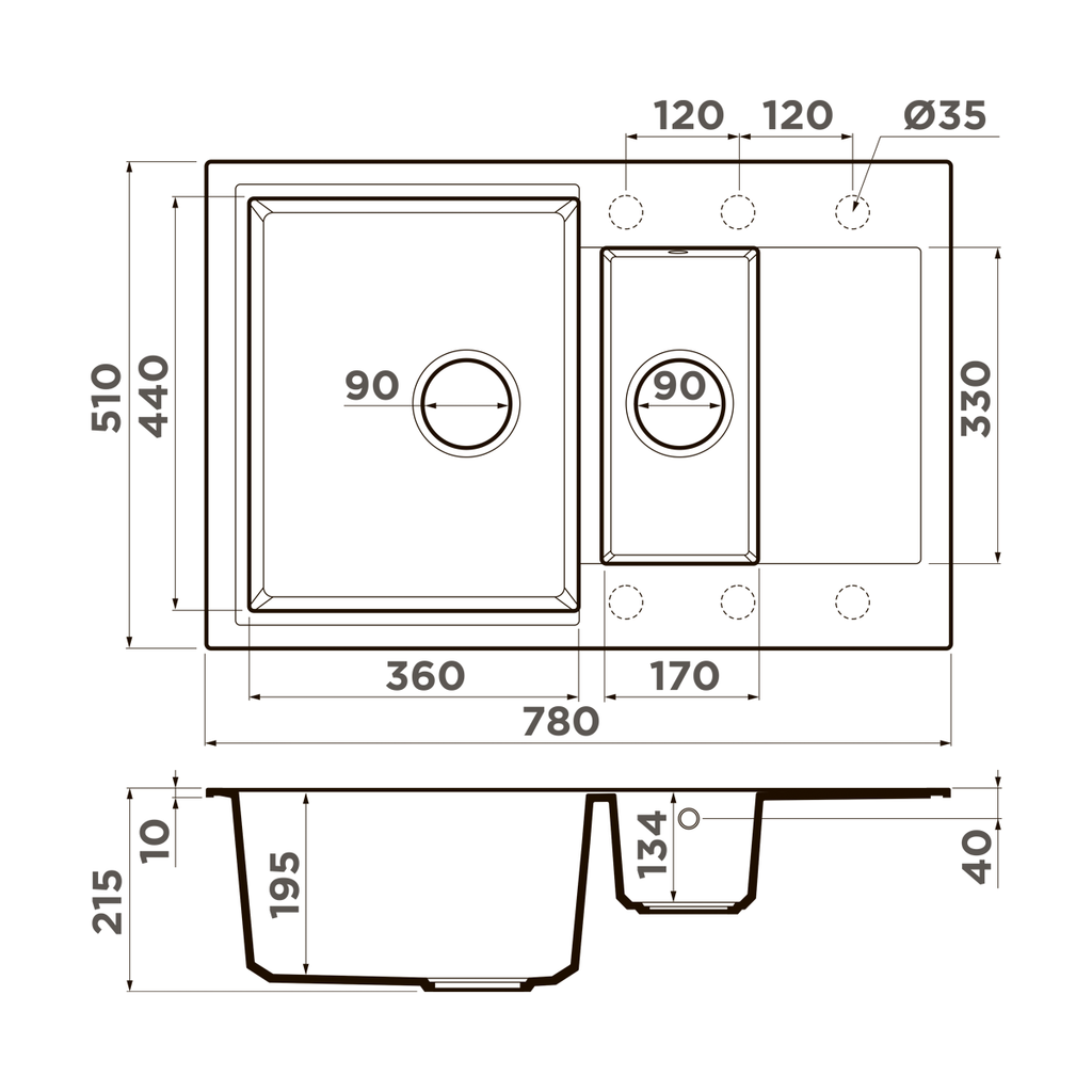 Omoikiri Daisen-78-2-GR - схема с размерами к мойке на разных языках на Hausdorf