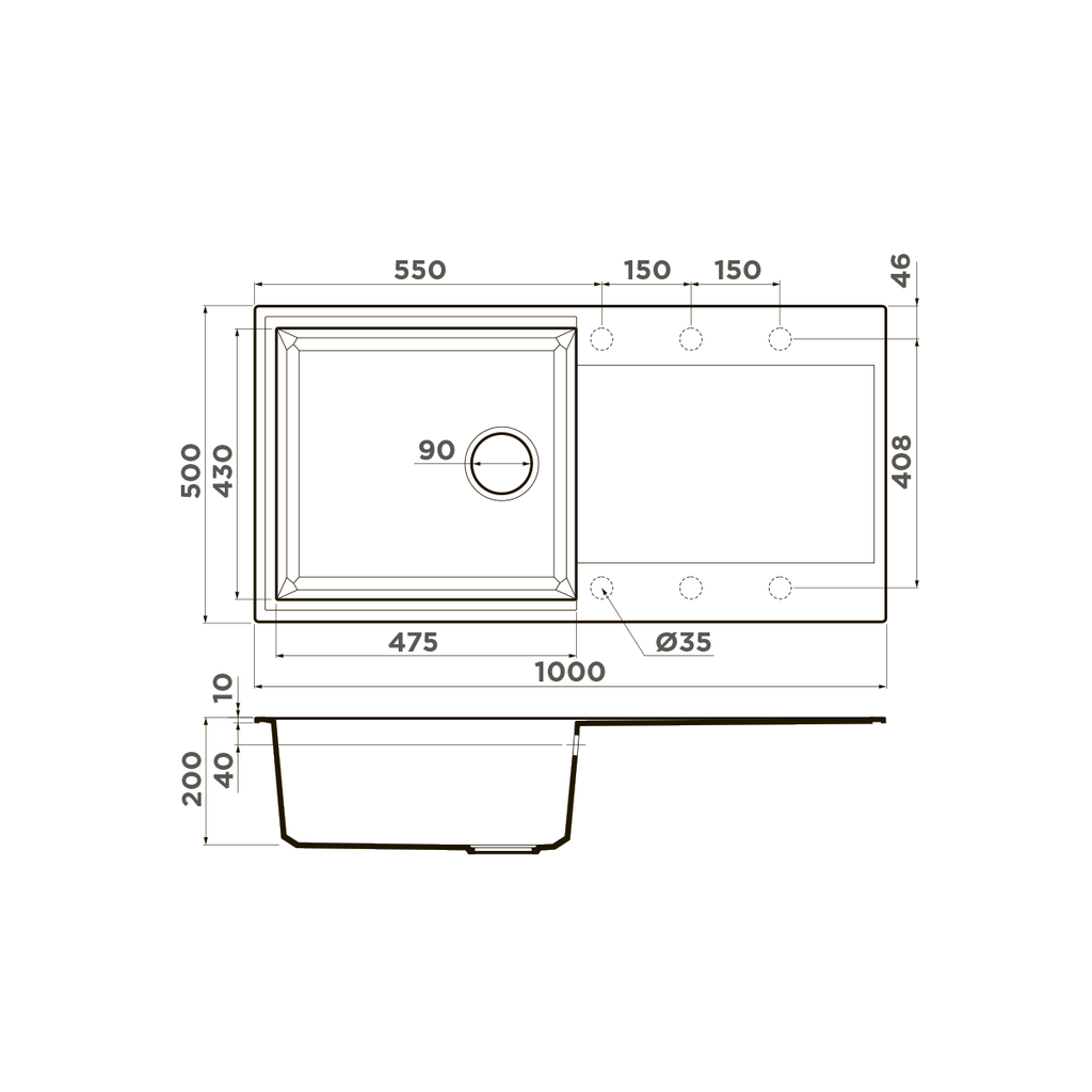 Сохранить файл: Схема с размерами к Omoikiri SAKAIME 100 CH.PNG, 69.83 Кб