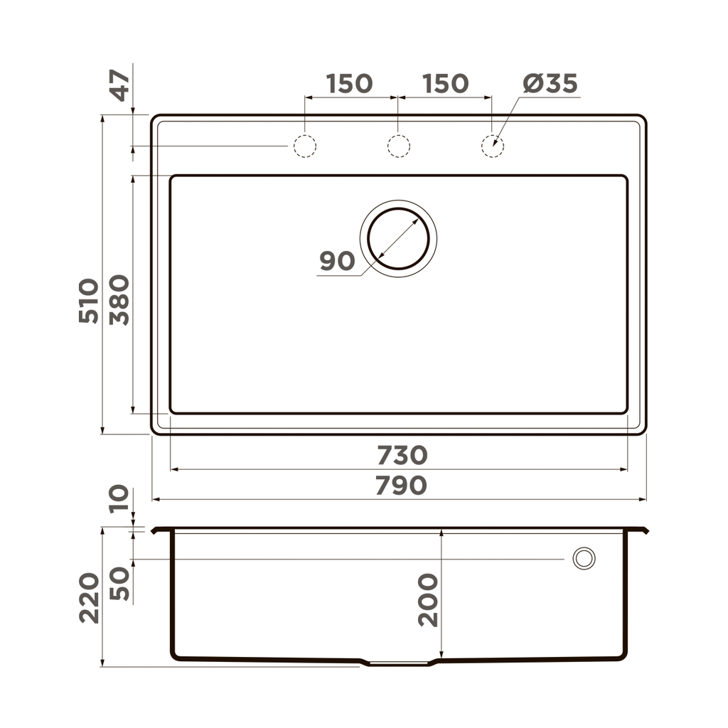 Сохранить файл: Схема с размерами к Omoikiri TEDORI 79-WH.PNG, 116.94 Кб