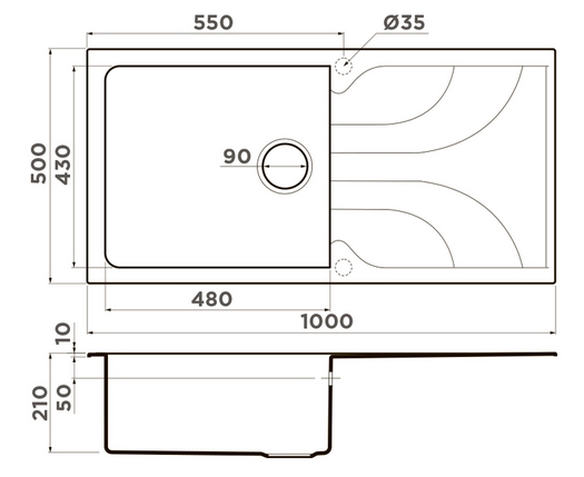 Сохранить файл: Схема с размерами к Omoikiri YASUGATA 100-EV.JPG, 60.75 Кб