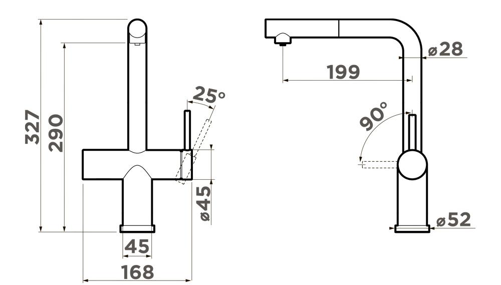Omoikiri KARATSU-S GB - схема с размерами к смесителю на разных языках на Hausdorf