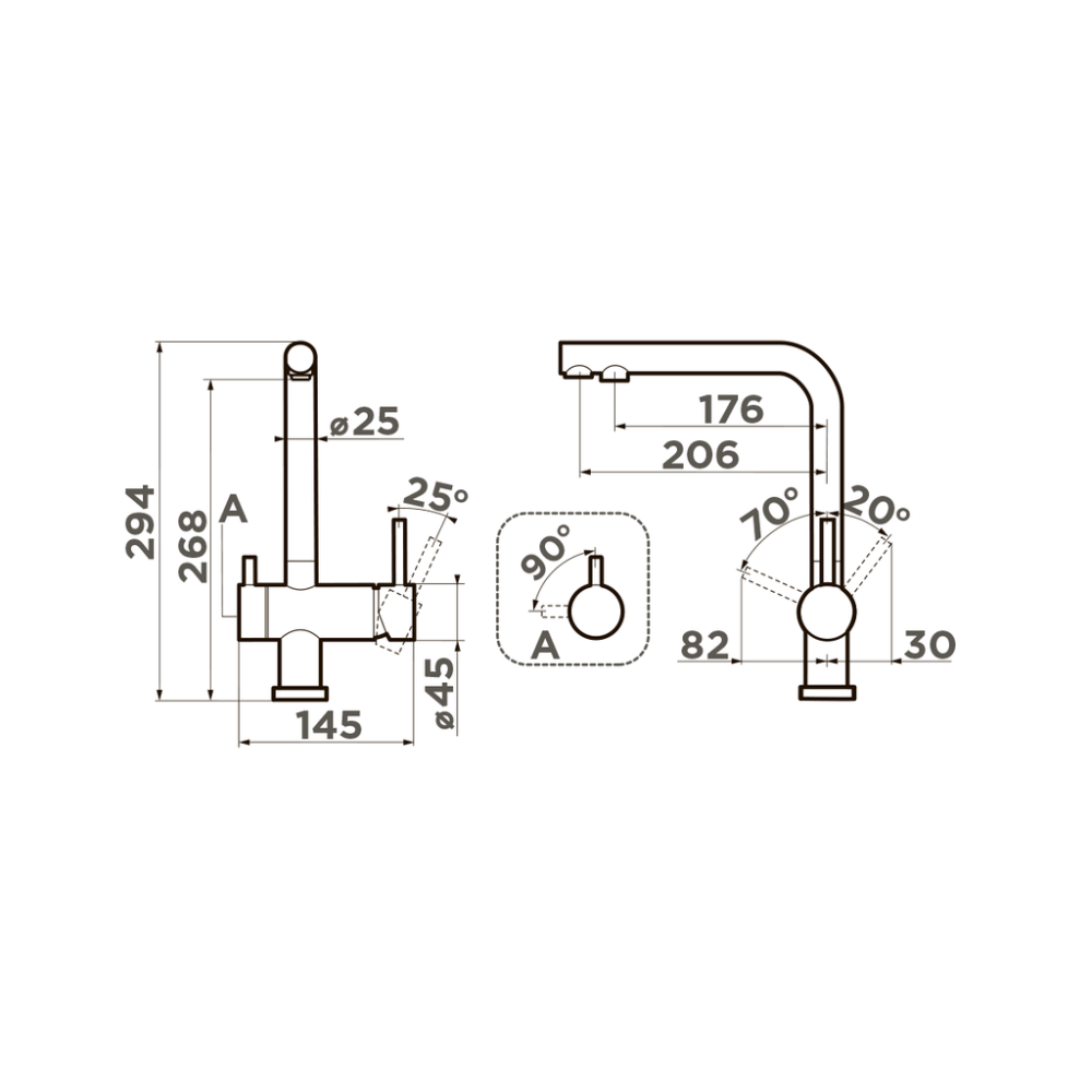 Omoikiri NAGANO SA - схема с размерами к смесителю на разных языках на Hausdorf