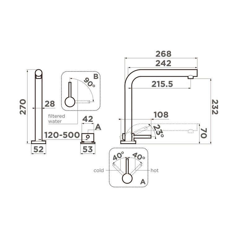 Omoikiri NARA 2 PLUS LG - схема с размерами к смесителю на разных языках на Hausdorf