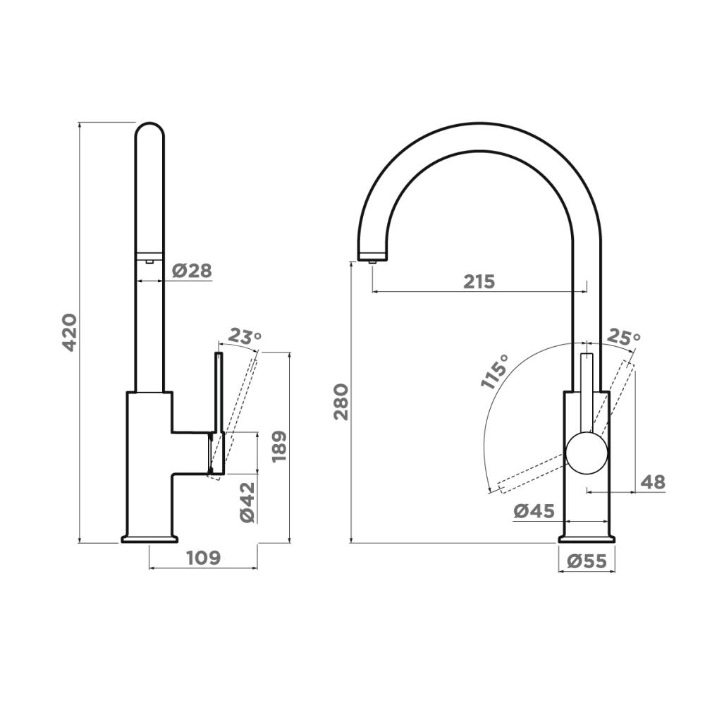 Omoikiri Okawa 2 Plus lg - схема с размерами к смесителю на разных языках на Hausdorf
