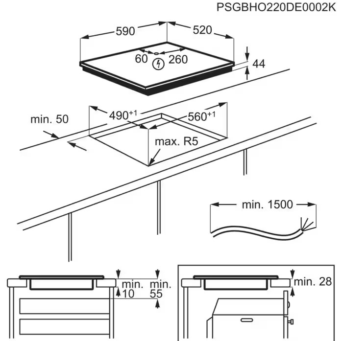 AEG TO64IB00FB - схема с размерами версия 2 к варочной панели на разных языках на Hausdorf