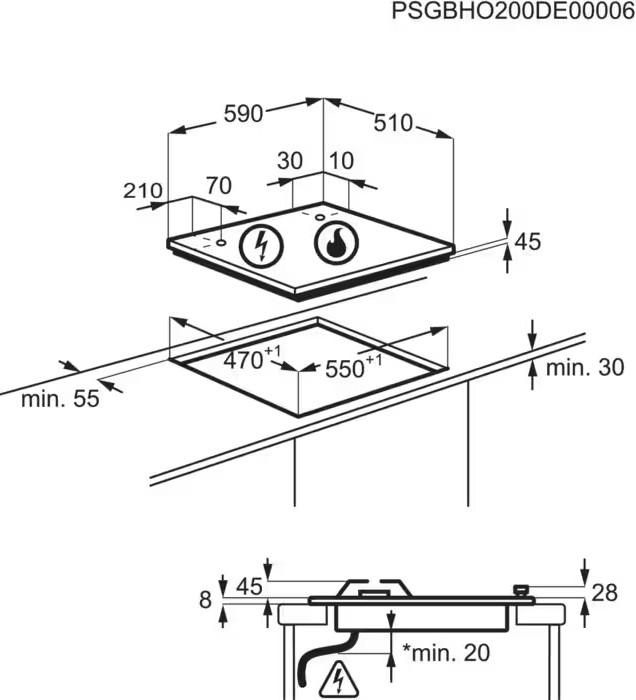 Electrolux KGG6407K - схема встраивания к варочной панели на разных языках на Hausdorf