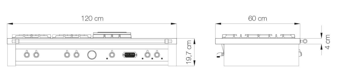 Lofra TRNM126/4BC CHROME - схема с размерами к варочной панели на разных языках на Hausdorf