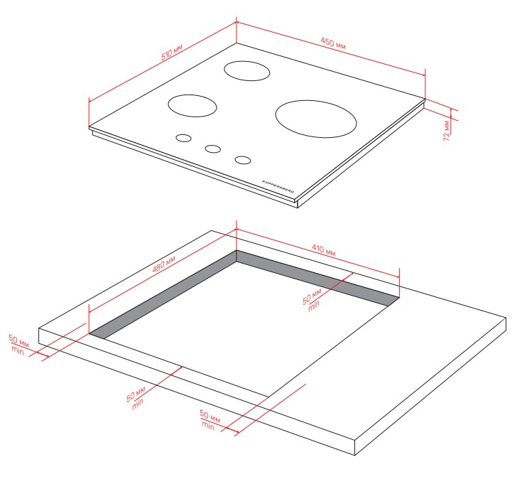 Kuppersberg TG 42 B - схема с размерами версия 2 к варочной панели на разных языках на Hausdorf