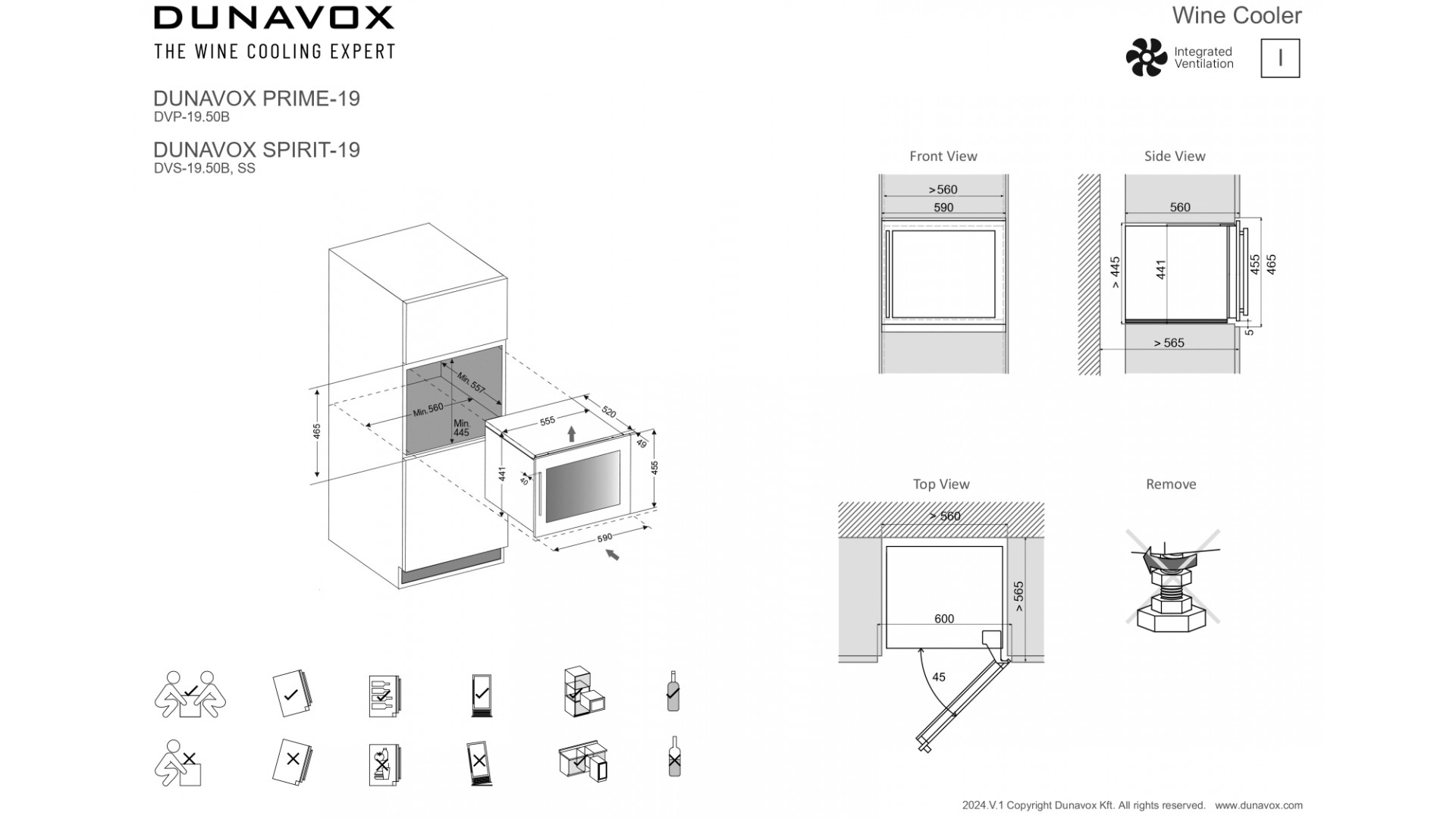Dunavox DVS-19.50C - схема с размерами версия 2 к винному шкафу на разных языках на Hausdorf