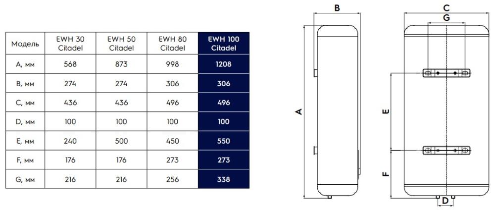 Electrolux EWH 50 Citadel - схема с размерами версия 2 к водонагревателю на разных языках на Hausdorf