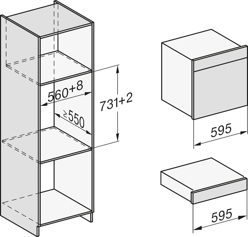 Miele DGC 7665 HC Pro OBSW - схема встраивания с размерами к пароварке на разных языках на Hausdorf