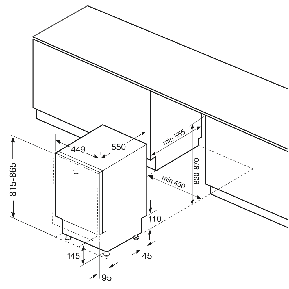 KRONA BRENTA 45 BI V2 - схема с размерами версия 2 к посудомоечной машине на разных языках на Hausdorf