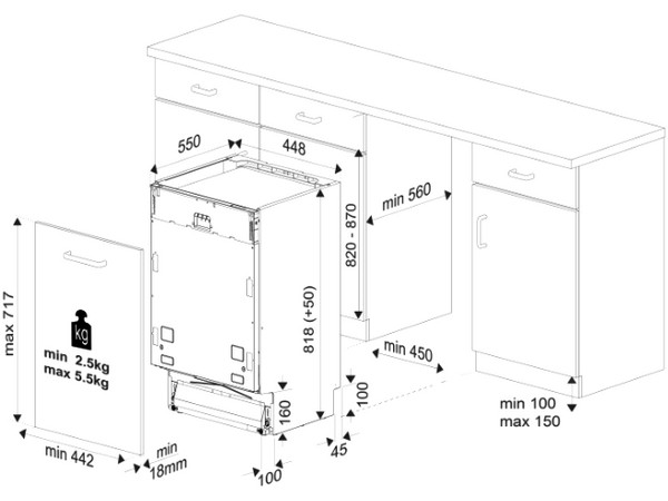Teka DFI 44700 NEW - схема с размерами к посудомоечной машине на разных языках на Hausdorf