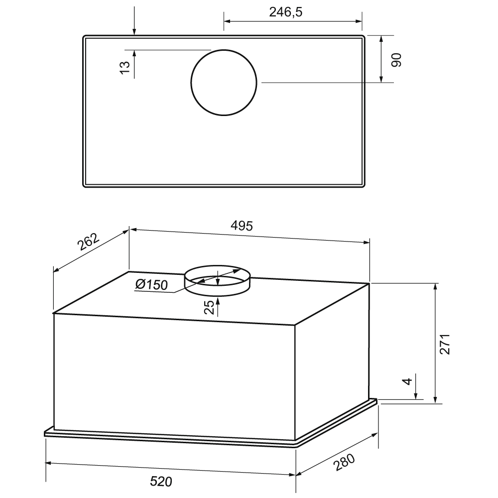 KRONA ZANDER 600 DN BLACK S - схема с размерами версия 2 к вытяжке на разных языках на Hausdorf