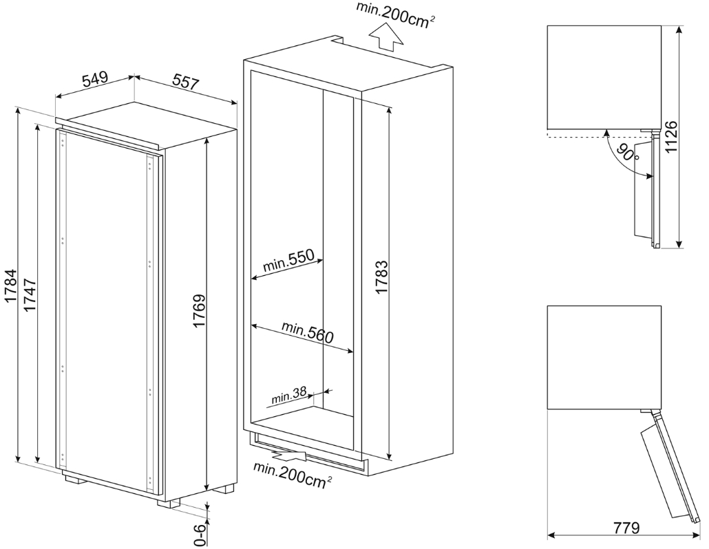 Smeg S9L174D1D - схема с размерами к холодильнику на разных языках на Hausdorf