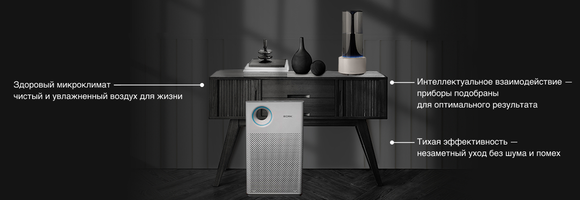В современной квартире сложно добиться безопасного для здоровья уровня влажности воздуха. Увлажнители воздуха Bork естественным образом оптимизируют уровень влажности в помещении, при этом автоматически смягчают воду перед использованием и стерилизуют резервуар для воды.