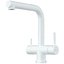 Смеситель с подключением к фильтру для воды — современная модель, которая облегчает быт. Вместо двух соединений с водопроводом у таких вариантов их три, а трубка, по которой идет отфильтрованная вода, находится внутри крана. Чуть дальше основного отверстия, через которое подается поток в раковину, расположено отверстие поменьше — для питьевой воды.