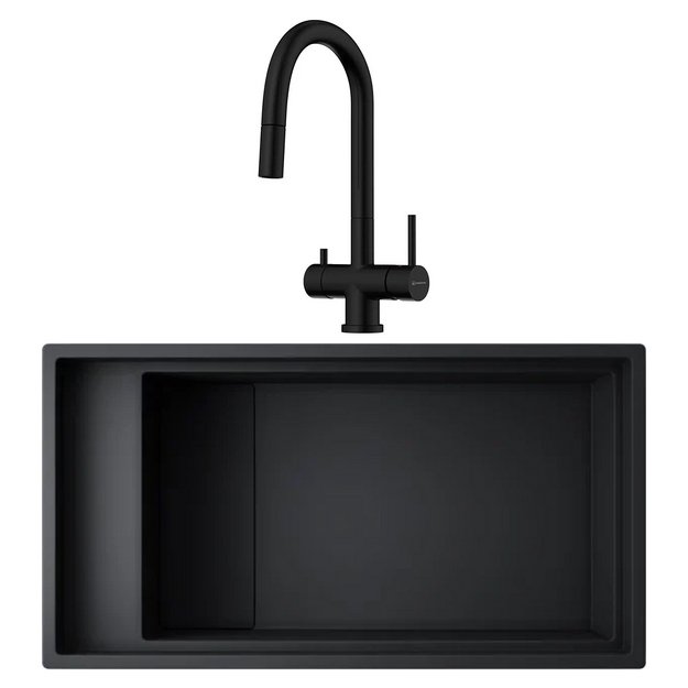 Интегрированная — встраиваемая модель из того же материала, что и столешница. Благодаря этому она выглядит как часть мебели.
