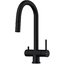 Смеситель с подключением к фильтру для воды — современная модель, которая облегчает быт. Вместо двух соединений с водопроводом у таких вариантов их три, а трубка, по которой идет отфильтрованная вода, находится внутри крана. Чуть дальше основного отверстия, через которое подается поток в раковину, расположено отверстие поменьше — для питьевой воды.